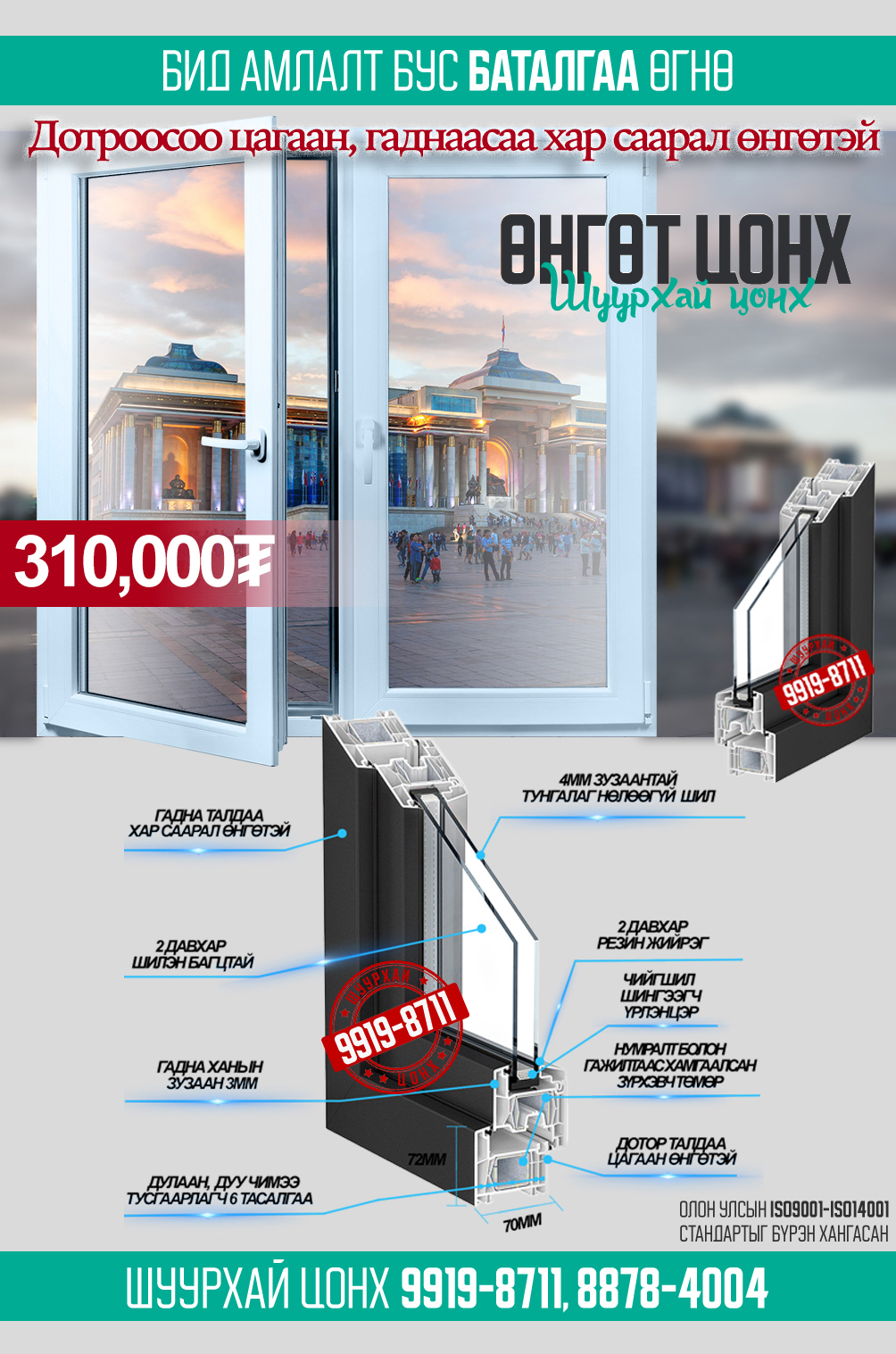 Өнгөт цонх Ажлын түүх Бор вакум цонх хийж гүйцэтгэв Бор вакум цонх, хаалга хийж гүйцэтгэв Гадна бор вакум цонх хийж гүйцэтгэв Бор балконы цонх, хаалга хийж гүйцэтгэв Бор цонх хийж гүйцэтгэв Бор цонх хийж гүйцэтгэв Хар саарал цонх хийж гүйцэтгэв Сэтгэгдлүүд